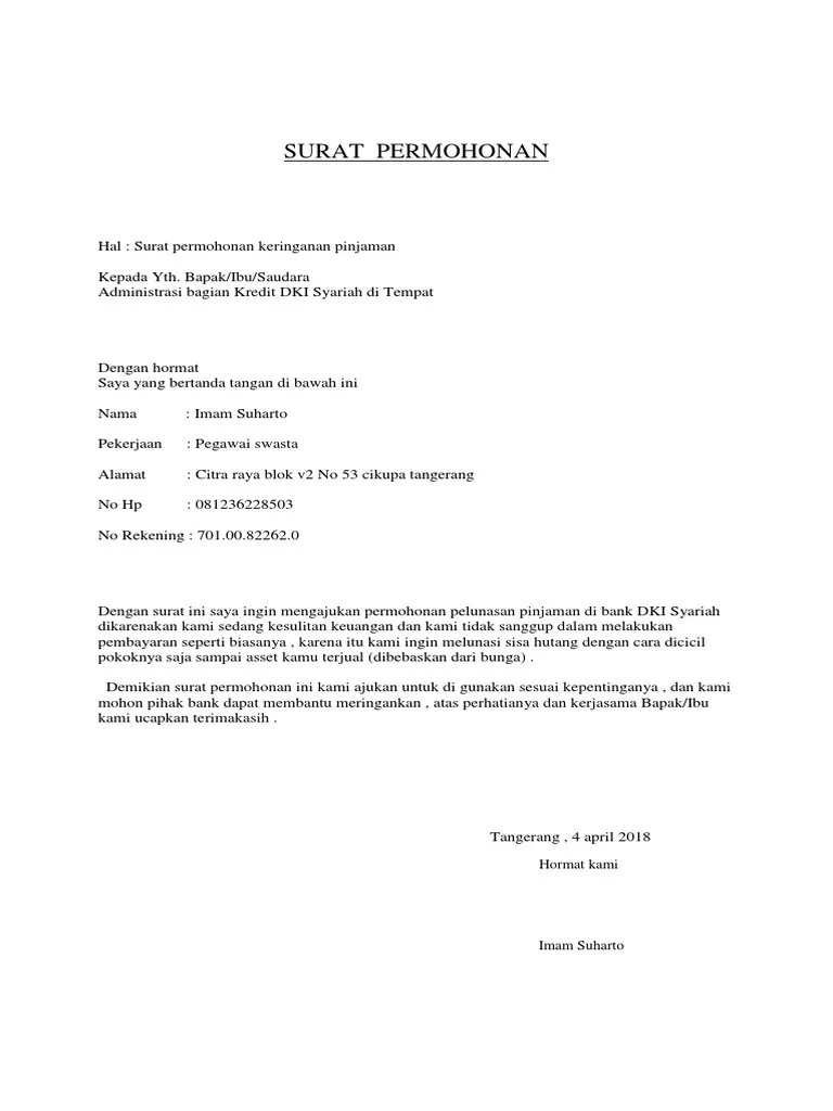 Contoh Surat Perjanjian Hutang Piutang Pelunasannya Diatas Materai from contohsurat.co Jika anda sedang mencari informasi terkait contoh surat permohonan. Namun jika anda berhalangan, maka anda bisa memberikan. Pelunasan kredit dengan keringanan adalah pelunasan kredit yang diajukan oleh debitur kepada kreditur/perbankan. Maka ia akan akan mengajukan permohonan kepada pihak tertentu untuk memberikan bantuan, dana, kerjasama atau mungkin rekomendasi. Bapak / ibu staf administrasi bagian kta bank permata di tempat dengan hormat,saya yang bertanda tangan di bawah ini:nama: Alexander suwiryo nomor ktp : Menyambung posting sebelumnya (read : Disini kami akan bahas mengenai surat permohonan mulai cara membuat surat permohonan hingga contoh surat permohonan.